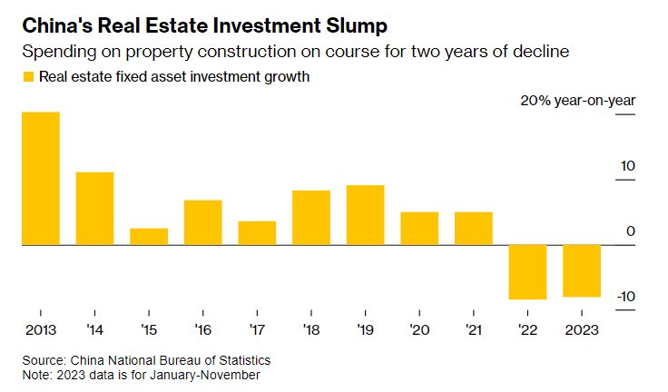 Real estate development, directly responsible for at least 10% of Chinese GDP, the main lever of China’s goal-seeking GDP manipulations, a prime employer, and the personal savings vehicle for most Chinese, has seen its second consecutive year of investment declines. Via Michael A. Arouet: