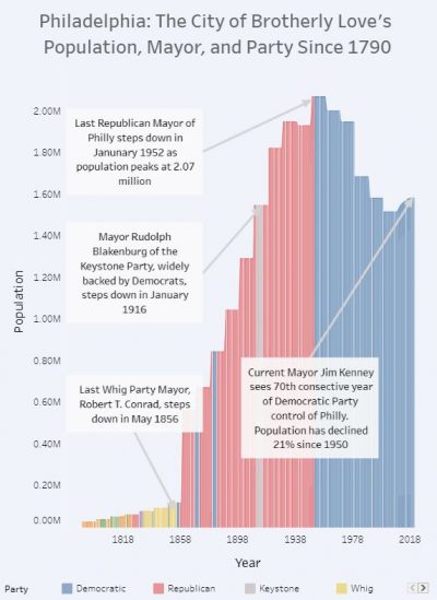 In the 60 years since Philadelphia’s last Republican mayor stepped down, it’s shrunk by 21%